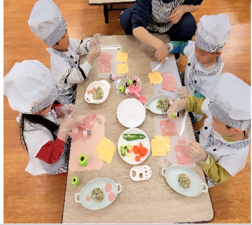 요리 시간만 되면 아이들은 작은 앞치마를 두르고, 하얀 요리사 모자를 쓴 채 테이블 주위에 모여든다. 테이블 위에는 색색의 채소, 과일, 고기 등 다양한 재료들이 준비되어 있고, 아이들의 눈은 호기심으로 반짝인다.